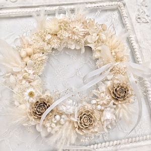 冬の白をイメージして作ったドライフラワーリース。 紫陽花をブリーチしてグリセリン液につけておいたら、滑らかな質感になります。スターチスなどを散りばめました。 明日は大寒❄️❄️ 寒さがいっそう厳しくなります。