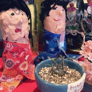 12年前の息子作雛人形 色々削ぎ落ちましたが…味わい深いでしょ🤣 春うららの陽気の週末 小さなみしょっ子達を独り立ちさせました 🏷みしょり隊 1枚目 いっちょ前のグラキリスは 鉢に負けないほど大きくなって欲しいなあ 2枚目 3枚目 ちょっと弱弱しい子もおりますが💦 成長が楽しみです🎶 こうなると蒔きたくなるんだな😂
