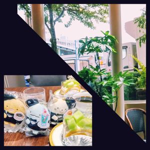 こんにちわ🌞🌡️🏜️ 久しぶりに コーヒー☕️専門店で メロン🍈ケーキ&ブラックコーヒー〜しっかり炭焼きです 🩷○○珈琲店✖️すみっコぐらし♥♡♥ すみっコぐらし~キーホルダー可愛い😆💕