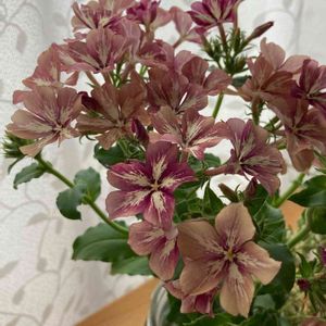 おはようございます*ˊᵕˋ* 今朝は、曇りかと思いきや、雲が多めながらも晴れてます😃 今日のpicは、月曜日に久しぶりに行った近くの園芸店で見つけた フロックス’クリームブリュレ’。 同じカゴにもこの色はひとつしか無く、名前も書いてなかったけど… この筆で書いたような独特な色合いに目が釘付けになって…しかも248円。これは買って帰らなくちゃと… レジで名前を聞いてもフロックスだけど…品種までは分からないとのこと… 帰ってから、ネットで検索しまくり…やっとこれと同じ花を見つけました~😃 フロックス ’クリームブリュレ’。 美味しそうな名前~(* ॑꒳ ॑* )⋆* クリームブリュレは、色合いも安定してないのか必ずしも同じではないみたいで、この色合いに出会えた事に感謝😘 何度も見てしまうほど可愛いっ💕