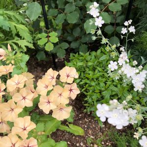 フロックスクリームブリュレ💠 株はヒョロヒョロ、葉っぱはウドンコ病?っぽいですがお花は休みなく咲かせています😊 1年草のフロックスなので昨年は種を少ししか収穫できず育苗も失敗してしまい新しい苗をお迎えしましたが、今年はたくさん種を収穫して来年こそは買わずに💠💠💠