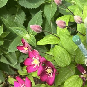 昨夜は時折り☔️雨脚が強くなったり⛈️雷が落ちたりとちょっとした春の嵐でした😰 皆様のお花たち、ご無事でしたか❓ 我が家の地植えのラックスたち、少し乱れてはおりますが、今日明日で何とかお世話してあげたいと思います。まだ見頃は続きますよ♪(๑ᴖ◡ᴖ๑)♪ 今朝は、乱れた部分には目を瞑って・・ 👀新しい芽を探してみました。 画像① 枯れ枝となり心配していたサルスベリ ブラックパール レッドは、ブラックパール特有のかっこいい😎色の新芽が出てきてホッ😌 画像② スモークツリーの新芽です。まだ一部にしか葉が展開してないですが、よくよく見ると米粒くらいの芽の赤ちゃんが沢山いました😌 画像③ モクレン。(新芽ではないですね😅) 今年は花数が少ないなぁと思っていたところ、遅れて(葉が出てから)第2部の開花が始まったようです。毎回、少し違った色で咲く不思議ちゃんですが・・今年の色が1番好きかも🥰 画像④ クレマチスのベビー苗。先日誘引しようとして株の上7割くらいをうっかりと折ってしまい落ち込んだのですが・・・下の部分と株元から新しい芽が出ました。😌 このほかにもクレマチスの蕾が次々とついてきて、喜びいっぱいの庭パトです。(^з^)-☆