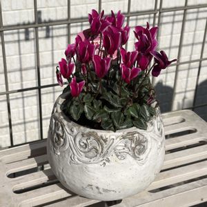 こんばんは😊 今年はいつもよりシクラメンが気になってます🥰 ハクサン さんの シクラメンドラゴン 🐉 ①シクラメンドラゴンライトブルー は カゴに3株植え🧺 真ん中のはホムセンで購入したお安めな子 こう見ると、きもち小さい(笑) でもね株間に植えたヘリクリサムがいい感じで 素敵に見えます✨ ②シクラメンドラゴンディープブルー こちらはおひとり様植え 蕾のあがり方も神々しい✨ 素敵😍