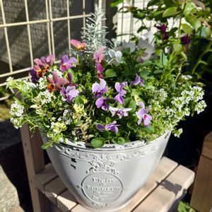 こんばんは😊 記録投稿兼ねてます📝 3連休、ガーデニング漬けでした😆 園芸店へ行ったり 予約していたお花が届いたりと 待機苗がたくさんだったので 寄せ植え作りました🪴 ローブドゥアントワネット ×4 バコパバリエガーター ×2 シレネユニフローラ ×2 ヘリクリサム ×1 フェリシアフェリシティ ×2 バコパバリエガーター ×1 リシマキアシューティングスター ×1 パンジードラキュラ ×2 バコパバリエガーター ×1 ビオレッタしずく ×1 セリフラミンゴ ×1 ロカハーツ月狼 アネモネポルトダブルピンク極 ×2 アリッサムシェリアプリコット ×1 まだまだ待機苗はあるけど これから届くお花に使う予定なので お花が届いたらまた植え付け祭りです🥰 冬越し用のお花も整理できたし 鉢も洗ったし あとは挿し芽を植え替えたり ラナンキュラスも植え替えなきゃな💦 あ、土が足りなくなりそう… 片付いたつもりだけど やる事いっぱいだー♪