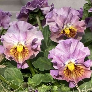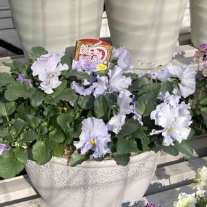 こんばんは😊 サカタのタネ さんの 絵になるスミレパルム 🤍 パッと見ると白だけど、うすーい水色というか紫で日が当たると輝いて見えます✨ パンジーだから1つのお花も大きくて存在感があります🥰 もっとブリブリなのかと思ってたけど縁の抑えめなフリフリもまた清楚な感じで可愛い💕 フリルの感じは個体差かな😆 春のモリモリを期待しちゃいます💖