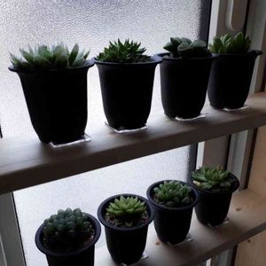 DIYした棚に置いたハオたち。 鉢をくっつけてる転倒防止シートがポイントです🎵笑