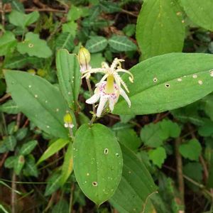 ヤマホトトギス。 ユリ科、ホトトギス属。 林床に沢山のヤマジノホトトギスが、咲いているなかで、ポツポツと紛れて咲いていました😊 月に一度、保存活動をされてる方が歩く以外、ほとんど誰も歩かないので、道が道でなくなっていて😅、踏まないようにそっと通り抜け🤗