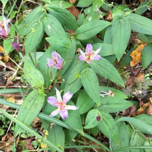 去年花の頃、杜鵑なのか?疑問に思って投稿しました。 その場所今は生い茂る葉がなくスッキリしてて、「ヤマホトトギス山杜鵑」という名札が確認できました。 そうかあの子ヤマホトトギスってーのね でもさーこのホトトギスっぽい葉っぱ、班模様はいってるよね 花咲いてるときは班なかったよね? 名札間違えてんじゃないのー? ☝️若葉の頃、油染みのような班がでるので 「油点草」とも呼ばれるそうです。 なるほどこの状態ね ヤマジノホトトギス山路の杜鵑ってのもでてきちゃったよ、すんごい似てる、ジがつくつかないその差は? 花咲いてからまたじっくり観察しよっと