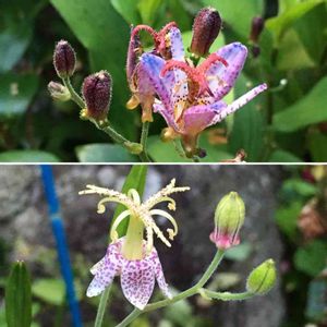 今日のお花はホトトギスですね❗️ 庭で今咲いてるホトトギスを2種類😁 夕暮れで光量たらずで画質荒いですが💦 上は台湾系だと思うホトトギス 下はヤマホトトギスです🤗