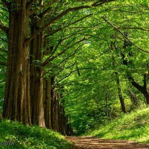 2018.4.21 神奈川県相模原南区の県立相模原公園にて メタセコイアの並木 こちらは反対側から、公園と言うよりはどこか外国の森林の中のような雰囲気ですね(^^;