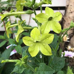 庭で年中咲いていて、花の色が変わっていき、花持ち良し、葉は常緑 雨になると香りがするそうです。 植えてみようかな? 花屋ではライムグリーン色を見ました。 夜になると香るのかも。 確かめてみたい! 友人の庭にて 🌸ニコチアナ🌸