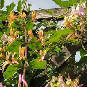 スイカズラ(ハニーサックル)が花盛りです。 横ぎるだけでもいい香りが・*:..。o○☼*゚・*:..。o○☼*゚・*:..。o○☼*゚