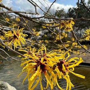 💠マンサク(満作) マンサク科、落葉性低木 いち早く春の訪れを告げる花木 花が良く咲けば豊作など稲の作柄を占う植物だったことから、またまず咲く事からマンサクとなったともいわれる たくさんの花をつけていたので今年は豊作だと良いですね🌾🌾 黄色のリボンのような個性的なお花が素敵でした💛 2023百花魁最後のお花で参加します 楽しませていただき ありがとうございました😊