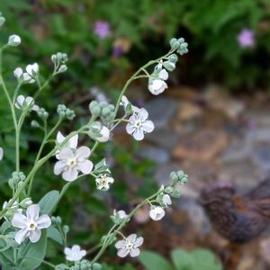種まきっ子のオンファロデス🌼🌼🌼 立枯れてしまった子も多かったけれど、いくつか咲いてくれました😊 ちっちゃな白い小花がとっても可愛いです💕