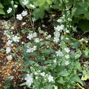 おはようございます☺️ ●1枚目リクニスフロスククリ 宿根草の小道を彩ってくれます ●2枚目シレネスワンレイク すごく花が美しい宿根草です 満開はこれからです ●3枚目オンファロデス 零れ種で毎年出てきてくれます ●4枚目ベロニカミッフィーブルート 庭の至る所で青花を咲かせてくれてます ●5枚目アジュガゴールドライム コチラも庭の至る所で咲いてくれてます