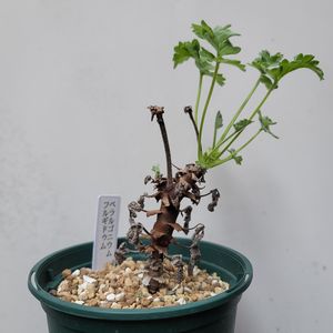 もひとつ先日お迎えした子✨ ペラルゴニウム フルギドゥム君"(ノ*>∀<)ノ やっぱり大木さん苗⊂( ・ω・ )⊃ 原種ペラルゴの種類どんだけ( ;꒪⌓꒪;) 竹の節みたいになる面白い子😆 ペラルゴにしては珍しい赤い花が咲くので 交配母種として有名なんだとか(・∀・)シランケド 背が高いので下に置いてΣp📷ω・´) 丈詰めたくなる私🤣🤣🤣
