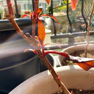 令和5年12月8日(金) おはよー^_^ございます 花期11月〜12月 アッサム ニオイサクラ(ルクリア) 2022-12にキレイな赤い葉っぱ🌿を購入 残念🫤肥料不足か?未だにツボミは有りません 育て方を見てみると 肥料不足は花がつかない事も 寒さにも弱そうで 夜は防寒に玄関内に入れました 🏷️8日は葉っぱの発表会 参加させて下さい🙋♀️🙋🙋🏼♂️