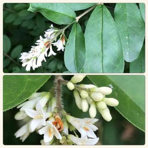葉っぱのさきに白い花の房。 あなたはどなた? 下は花のアップの写真です。 どなたか名前教えて下さいm(._.)m トミヂさん教えて頂きありがとうございました😊