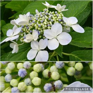 おはようございます☁️ 台風が上陸したようですね🌀☔ 相変わらずゆっくり移動の台風にやきもきしてしまいますが、ただただ被害が無い事を祈ります🤲 やっと咲いたガクアジサイ。 僅か1輪。 瀕死の状態から生還して2年目。 どうしたら花数が増えるかしら? どうしたら皆と同じ季節に咲かせる事が出来るかしら? でも、生き返ってくれただけで善し。 咲いてくれただけで善し。 愛しいね😍