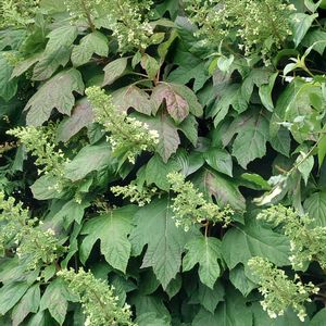 今日の花 ヨモギ 3枚目裏庭に自生中〜色々な間からアスパラもニョキニョキ🤭💚✨ 1、2枚目〜今年は大豊作のカシワバアジサイの蕾