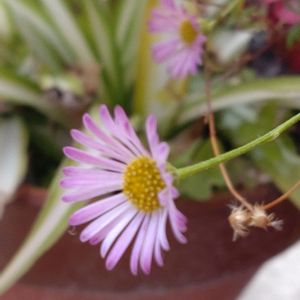 昨年末 薬局横の喫茶店の鉢植えからひょこっと可愛いお顔を出して咲いていました🌸🌿 お名前「ペラペラヨメナ」 頼りなさげな可憐なお花に₍ᐢ. ̫.ᐢ₎♡