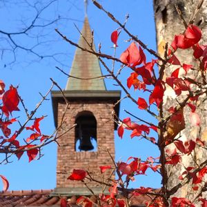ぬけるような青空に誘われての散歩 碌山美術館のニシキギの紅葉がきれいでした