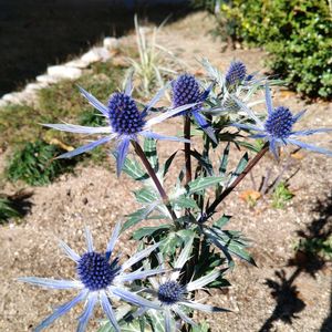 友達とランチしたお店のお庭に咲いていたマツカサアザミ