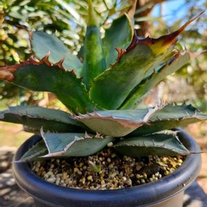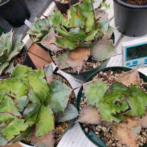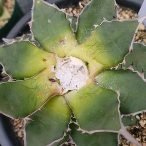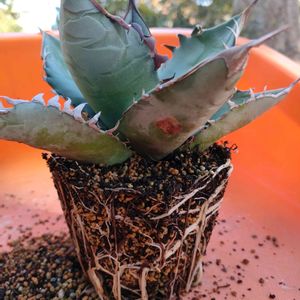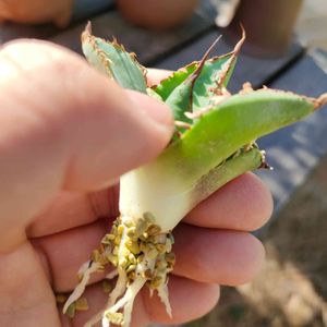 アガベダニのせいでべろ~んとなっちゃって 順調にいってればカッコ良くなってたんじゃないかと🥲 オテロイ実生株 3枚目 下葉とって、根っこ整理して植え直し 今季は徹底的にダニ対策