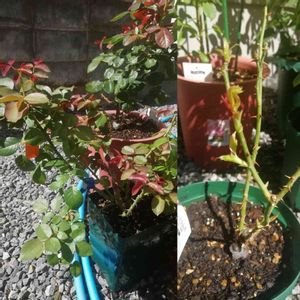 昨年挿し木したばらです。 多分ステファニーグッテンベルク? 地面に下ろしてみました。