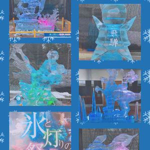 【番外編】part1 「2023年 氷と灯りの祭典」 今回で14回目の開催です。 LEDライト💡で色が変わるのよ😊 この氷彫刻は、夕暮れと共にライトアップされます。東海地方のホテルに勤務する料理人などのグループがチェンソーやのみなどで氷を削り出し、大小あわあせて20基の彫刻を作っています。また飛騨地方の民芸品「さるぼぼ」の像は愛くるしさがあり重量感ある作品に仕上がっていました。 氷が溶けちゃうから寒い地方でしか出来ないですよね😅 🏷びっくりポン‼️