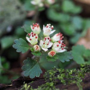 🌱シロバナネコノメソウ 近畿以西の沢沿いの湿地に生育する 白に赤のコントラストが美しい