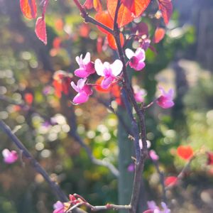 ビオガーデンより アメリカハナズオウ フォレストパンジー咲いています。😄🌸💕 小さい銅葉も出てきました。👀