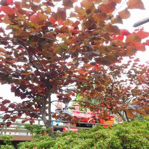 銅葉が光に透けて綺麗でした🍁(ღ˘⌣˘ღ) 庭にあったら良いなぁ もしかしたらアメリカハナズオウ ルビーフォールズかも ╮(´•ω•)╭?違いが分かりません