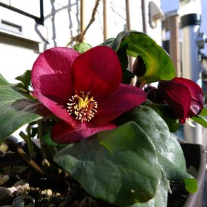 2年目のクリスマスローズ レオナが咲いてくれました👏 ただ、本来は真っ赤な花なのに、暖かすぎる冬だからか、赤くなりきれてません😭2番花以降、頑張って赤くなって🙏
