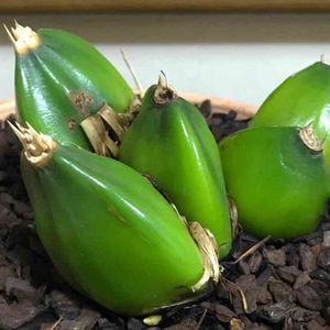 1..昨年の5月に、シナモンの香りがする 蘭、リカステアロマティカをお迎えしました。でもすぐに、花が終わり🌼 そのあと、ベランダに出すと、葉が日焼けで、枯れたようになり、落葉したので、ダメだと諦めかけていたのですが、 バルブが、しっかりしていたので、 部屋の窓辺に置いて、時々、水をあげてました。 葉が無くなってから、約半年経った4月中頃 花芽が急に出た頃、部屋の気温が日中は27度を超えはじめたころ、部屋の他の植物も 活発になりはじめ、この写真の様になってるのに気がつきました。少し新芽も、でています。