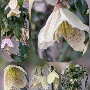 おはようございます🤗☀️ もんもんチャン 主催の キュンキュン乙女倶楽部 六周年おめでとうございます🎉✨🤗✨🎊 冬咲き「クレマチス・ナパウレンシス」で お祝いさせて頂きます㊗️✨🎉 この日の為に 咲いてくれたようです🤗 (3年前に5cmにも満たないさし芽🌱で我が家へ晩春から夏には落葉の為 枯れたかと……晩秋に葉が出てくる冬咲きクレマチスです💐) 下向きに健気に咲く 「ナパウレンシス」です💐 今年初めてお花をみせてもらえました😃💖 有り難う あ・り・が・と・う (*^-゜)vThanks! 🏷️六周年記念投稿 です🤗💐 キュンキュン乙女倶楽部No.303 🏷️コラージュ仲間達 🏷️楽しもう2023年 参加させて頂きます✨😌✨🤗 記録 月齢 最低気温1℃ 最高気温14℃