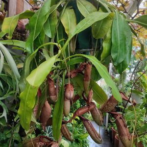 ネペンテス ベントリコーサ なかなかピッチャー⚱️をつけてくれなかったけど、ようやく小さいけれど色白🤍の⚱️が付きました😆人😆✨ 後ろの大きめのバッチいピッチャー⚱️は24/1/28投稿に美しいエリを見せてくれたのですが、カット✂せず今に至ります🤣そろそろお役御免にしましょうかね🙂よく頑張りました