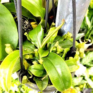 皆さんこんばんは😃 今回は、フォロワーさんのリクエストにより、うちのお店で取り扱ってるウツボカズラを紹介します😊 名前はタグが消えてたので分からなくなりましたが、調べた後に追記しときます😅 ご覧になって分かるように、花芽が上がってるのが分かりますね😺 残念ながらウツボの部分は傷んだので切ってしまいましたが、いくつか新しいのが出てきそうですε-(´∀`*)ホッ 花が咲いたら、またupしますのでお楽しみに😊♪ 追記 このネペンテスの名前は多分 ネペンテス・ダイエリアナです😼多分ね笑