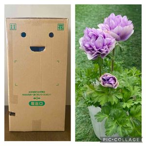癒し系ダンボールが届きました💛 3つポチッたうちの一つ アネモネ極(きわみ)の白地に紫が欲しかったのですが、あの色だけなかなか無くて。 でもこの子、めちゃくちゃ気に入りました😍💕
