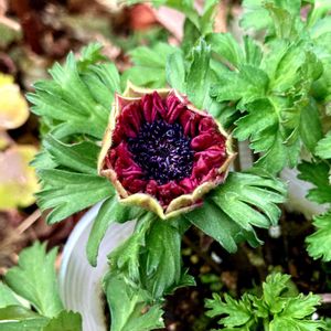 こんにちは🌿 今までアネモネを迎えた事がありませんでしたが 目が合った瞬間にひとめぼれでした🏵️💞 オシャレなアネモネ😊 先日拾った小さな松ぼっくりを添えて🌿