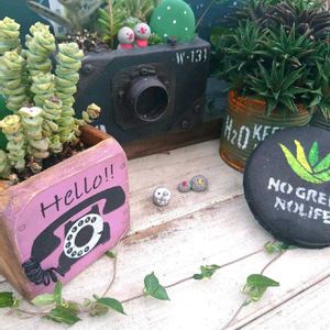 1️⃣妖怪リメ缶のフランケンにサボテンの花が咲いたよ🌺🌺 2️⃣上から見た図 乙女なフランケン... 可愛いけど、やっぱり笑える🤣