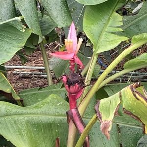 散歩で見かけた家庭菜園の端に植えられた「バナナ」。 これから寒くなるから実はならないだろうから観賞用かなぁ。 撮影日:10月12日