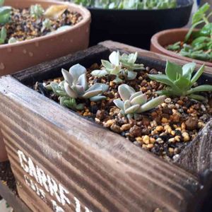 こんにちは 初めて 最初から最後まで自分で作った鉢に葉挿しっ子を植えてみました✨ 釘が出てきたり 木にひびがはいったり 失敗がたくさんありましたが どうにか完成しました🙆 電動ドライバーも使えるようになりました☺ 一歩ずつ頑張ります😆 くろすけ ティンカーベル ピンクプリティ