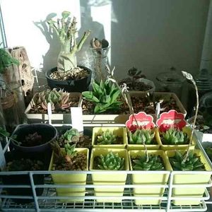 こんばんは♪ 16/7℃☀️時々☁️ 今日は午後はくものおおい☀️だったな😓 昨日ハオルシア属に水やりをしたので、 午前中まだ日が当たらない場所に出して 明るい日陰干しを🌼💕 昨年、西日の怖さを知らずに 置いといたら……🙄……茶色に😱❕❓ 紅葉してる〜😊と、勘違い😓😣🌀 そんな出来事があったなぁと、 過去形になるほど、 元気一杯😌💞💭の ハオちゃん達です‼️‼️🌼💕 «ハオルシア属» «雪の花» «オブツーサ» «グリーンマスカット» «玉露» «パルバ» «シンビフォルミス» «サラダ菜»