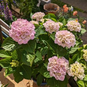 ①~③アジサイ コットンキャンディ ほんとに綿菓子みたいに可愛くて あまり広がらず、ギュッとコンパクトに まとまる所も好きです☺️ コットンキャンディは一昨年の今頃 母の日の売れ残りでかなりお安くお迎えしました。 今年も売れ残りハンターと化して 紫陽花を二株狩ってしまった私。 三枚目の右下にちょこっと 写っている小さな子(ラブリーデイ)と 他にももう一つ、半額以下でお迎えしてしまいました。 挿し木もたくさんあるし 置き場が無くなってきてますが やめられないです💦 ④アガパンサスの蕾とニゲラの実