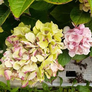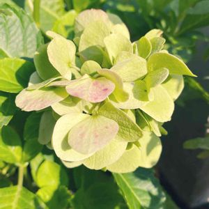 💚紫陽花コットンキャンデー お迎えしました。名前が可愛い💠💕🎶 これからの色の変化が楽しみです。😉💕✨ 最近、葉とか車に粉を振りかけた様になってるけど⁉️何かの花粉❔なのかしら⁉️😲