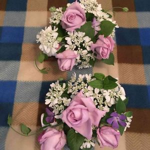 友達が、たくさん咲いた 我が家の🌹ブルームーン🌹で アレンジを作ってくれました😍🍀💓🌱💕🎶 香りも良いし、幸せ〜〜🌹💕💓