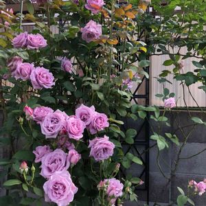 ブルームーン🌹 とってもいい香り💕 1年でこんなに大きくなるんだぁ〜 つるバラって豪華〜✨✨ 雨の降る前に☔️picを〜