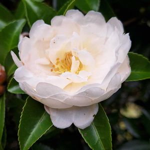サザンカ 〘今日のお花〙 ちょっとピンクかかった可愛い 花姿…♡ 公園散歩中にて…