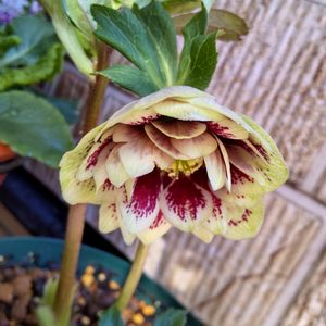 昨日の南風🍃のせいか(?)人生初の私の…クリスマスローズの様子もなんとなくイメージできはじめそうに撮れ🙌 🖐🆘…詳しいお名前までは望まないですが😅 ダブル?八重咲き?? ドットの柄も見えてるよう。 どういうくくりになるのか、教えて頂けたら幸いなのですが。よろしくお願いします🤗💕